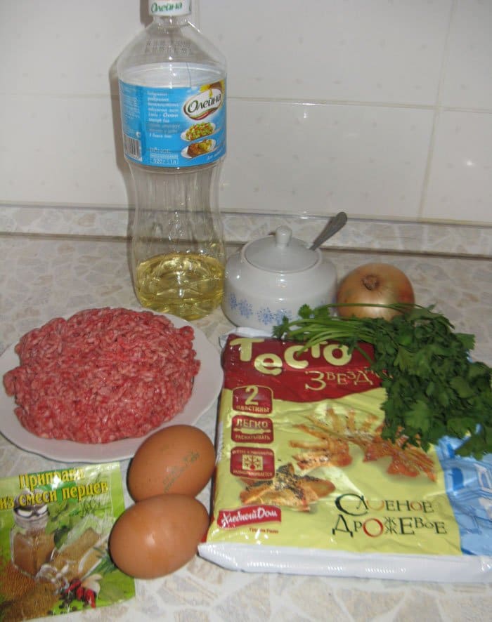 - Слоеное дрожжевое тесто – 1 упаковка (400 г)