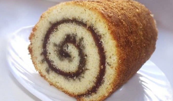 Свернуть рулетом вместе с проложенным полотенцем. Дать полностью остыть. Развернуть рулет, смазать начинкой, свернуть, дать пропитаться.